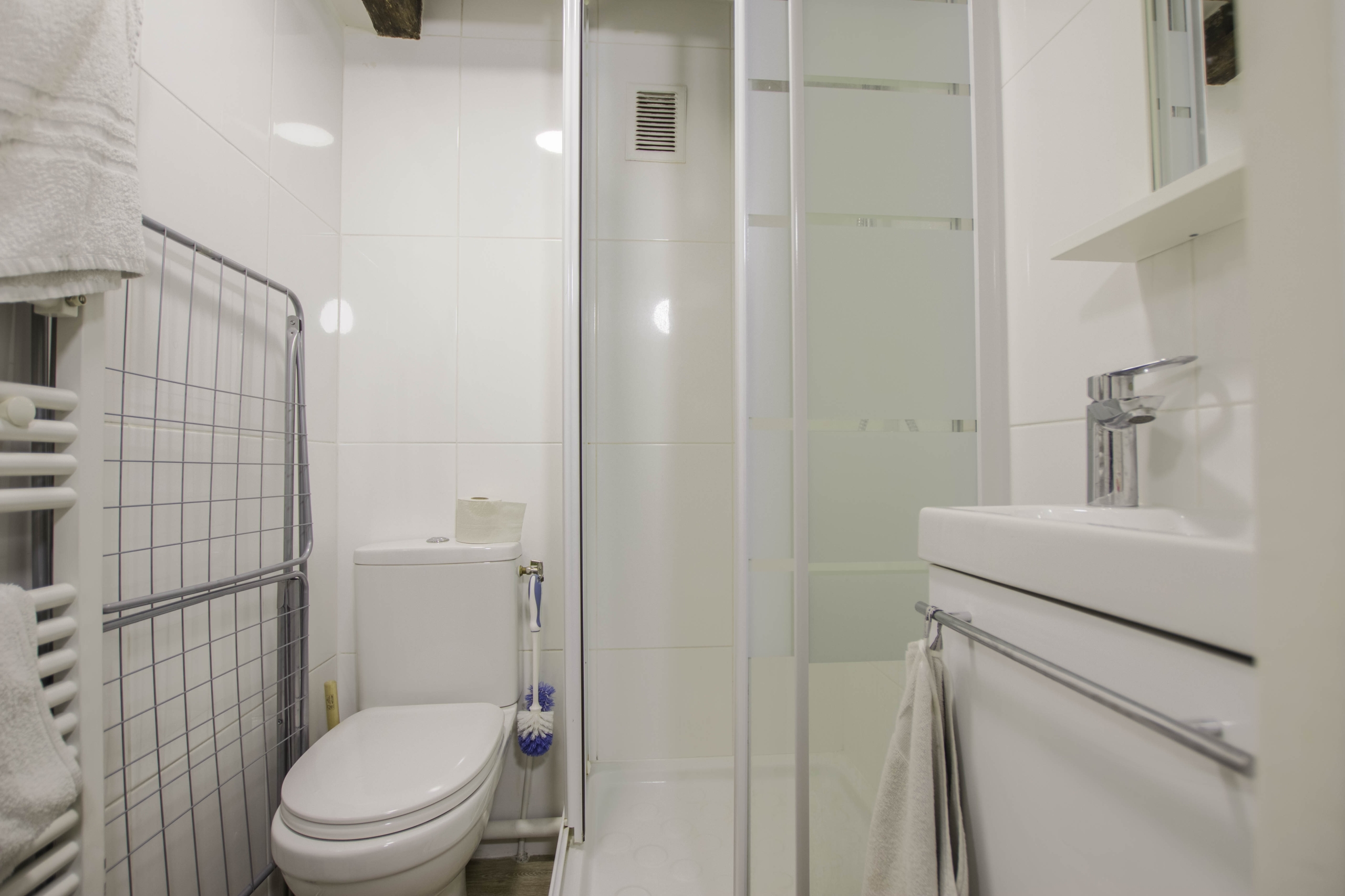 Ce studio confortable est un bijou parisien offrant une vie citadine exceptionnelle. L’espace est intelligemment aménagé pour maximiser chaque centimètre carré, avec une attention particulière aux détails et au design. Les poutres apparentes au plafond ajoutent du caractère à l’intérieur, rappelant l’histoire de l’immeuble.