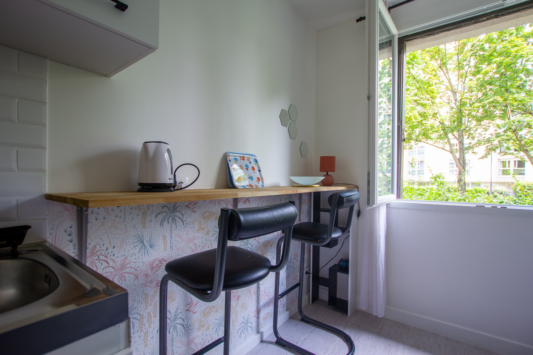 Espace repas avec tabouret haut et mange-debout pour vos moments conviviaux